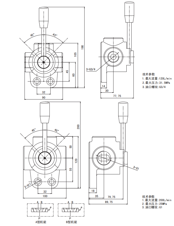 RV列液壓轉閥是由閥體、內部閥芯和手柄桿組成。轉閥有3通,4通,6通,8通,可以根據客戶(hù)需要定制,同時(shí)有中位開(kāi)啟和關(guān)閉兩種不同的閥芯機能,流量從60LPM到200LPM,RV系列液壓轉閥可以實(shí)現快速正確的切換油缸和馬達之間的油路??蛻?hù)可以選擇3通油路,可以從A切換到B或者在中位回油箱。