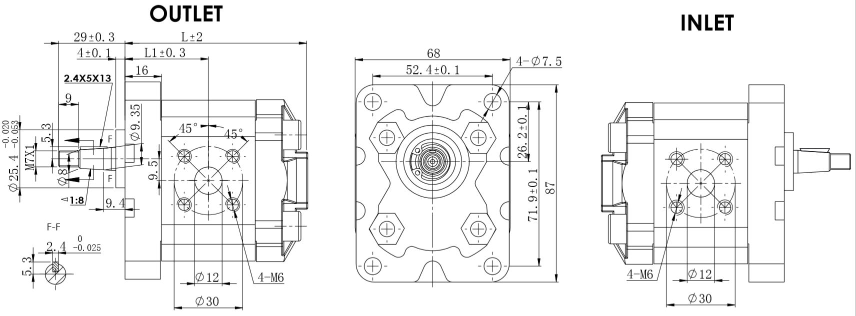 標準端口:M6 螺紋深度 12 mm。